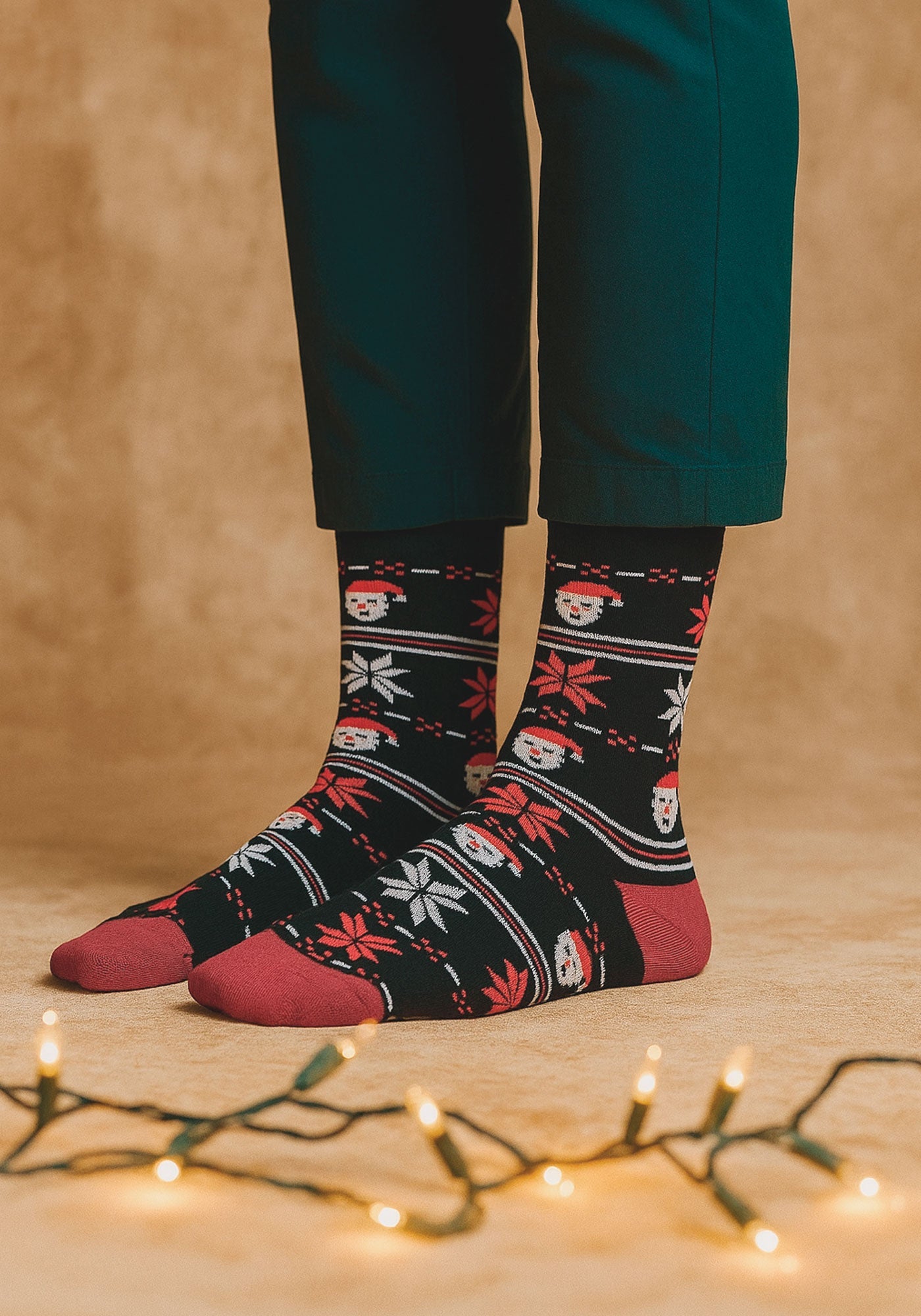 Estas medias navideñas son el toque divertido perfecto para celebrar con estilo y comodidad. Con un diseño festivo ideal para cualquier pie, mantienen tus talones protegidos mientras añaden alegría a tus pasos durante la temporada. ¡Dale un guiño a la Navidad con cada paso que des!